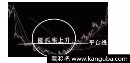 4、股价在一段时间内,由缓缓下跌转为底部平移或底部震荡,最终缓慢上升,类似圆弧形状;股价一旦突破圆弧平台就会加速上行趋势。
