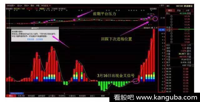 5、上升途中短时间窄幅横盘整理,为一种强势的整理过程,也是主力控盘行为,来个急刹车,然后主力再将重新发力拉升,启动上破线时可介入。