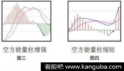 空方能量柱缩短(图四):空方能量柱增强(图三)转化为空方能量柱缩短(图四)。调整随时结束,重上上升趋势。