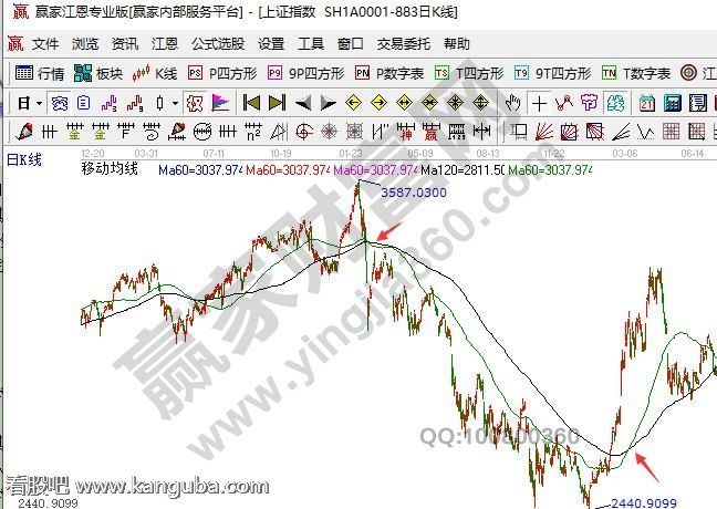 出现阴线多而阳线少的走势或者是震荡加速下跌,都是长期趋势下跌的开始。而具体在运行的时候,股价不跌破这两条线的时候尤其是60日的时候要进行观望。