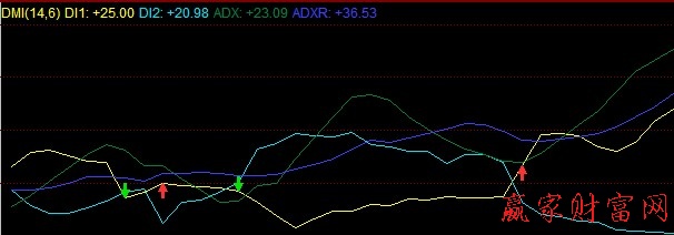 DMI指标是趋向型指标的简称,是反应股价运行趋势的一种技术指标,它主要是由四条曲线组成,分别是PDI(+DI)线、MDI(-DI)线、ADX线和ADXR线。