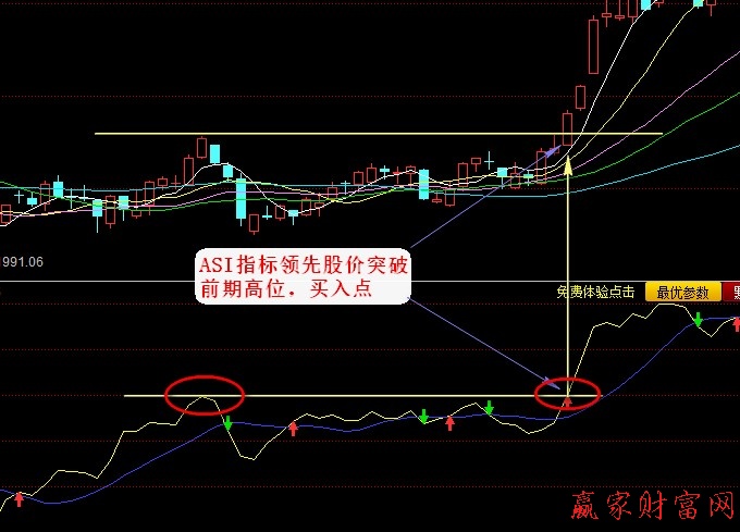 ②如果ASI线向上突破前期高点的额时候,则是一个明确的买入信号。